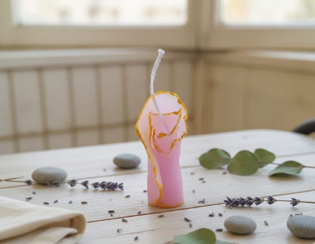 Each Pink Sculpture Candle is individually handcrafted, which means no two candles are exactly alike—making it a perfect choice for customers who appreciate unique, artistic décor items. The golden detailing around the edges enhances its beauty and makes it stand out as an elegant decorative candle suitable for homes, studios, cafés, spas, and gift boxes.